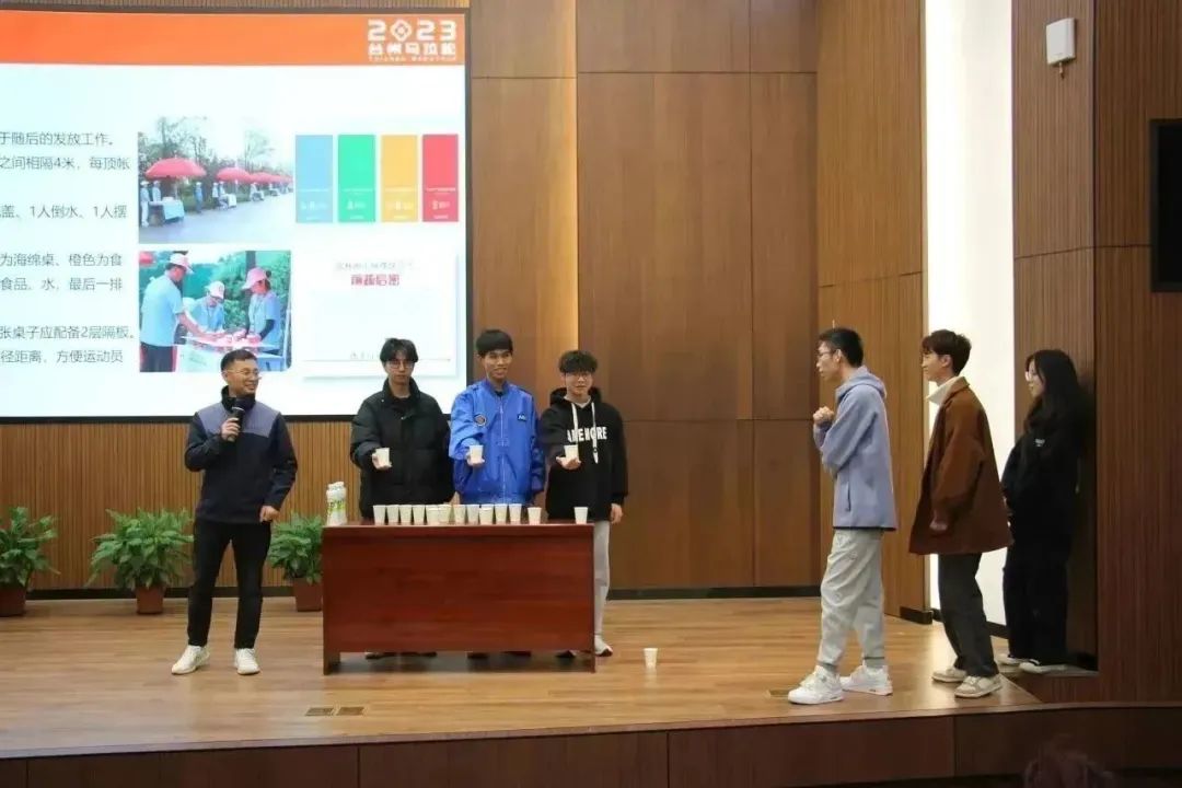 其次,植丽敏具体讲解了各高校工作安排,其中台州职业技术学院青年志愿者主要负责赛道沿途补给站与赛道沿途的指引工作,台州学院青年志愿者主要负责赛道沿途补给站,台州科技职业学院负责起终点指引、场外/场内指引、存取包区、检录口等,工作安排的明确讲解,不仅清晰将工作归属到每一位青年志愿者,而且有助于志愿者团队之间凝聚力的提高。