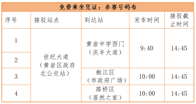 注:实际发车时刻表会根据预约情况作调整,具体班次以赛前发布的信息为准,请实时关注台州马拉松官方公众号发布的相关信息。