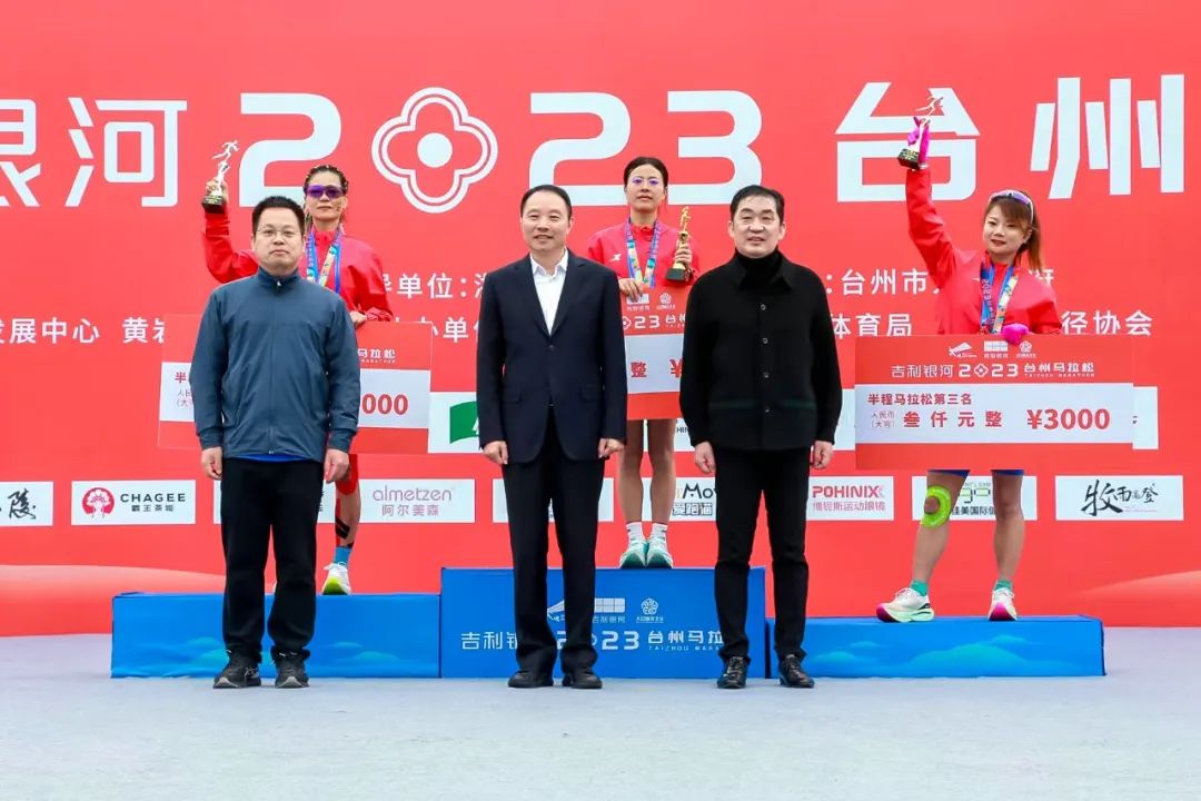 在半程马拉松比赛中,第一集团竞争激烈,最终男子组来自山东临沂的选手孙宗扬以1小时5分47秒的成绩成功夺冠,来自北京的选手杨斌以1小时7分46秒的成绩获得亚军,台州选手林雨琪则以1小时9分7秒的成绩获得季军。