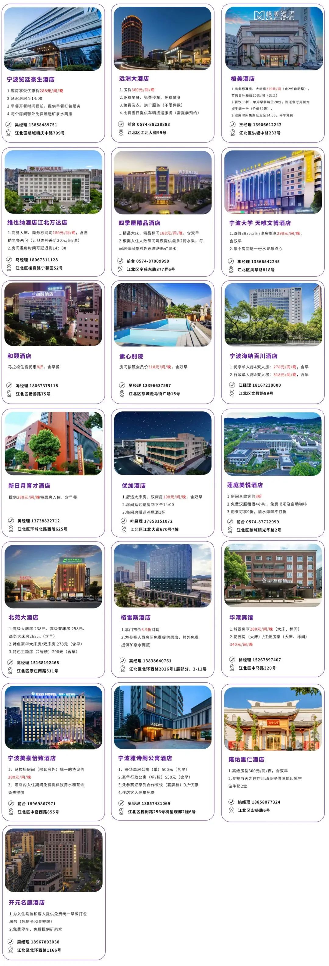 2023年12月28日至2024年1月5日期间,江北区19家酒店、5家民宿面向参赛选手推出优惠活动,选手持报名凭证、号码布即可享受优惠哦。