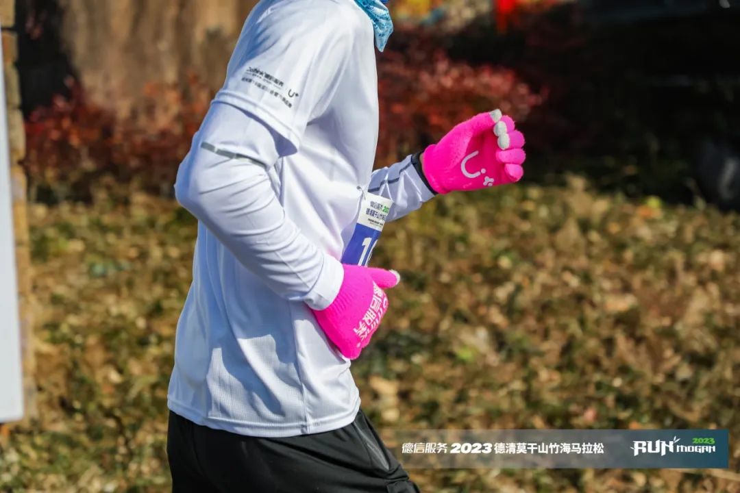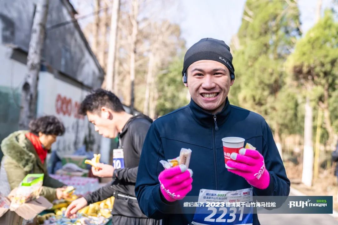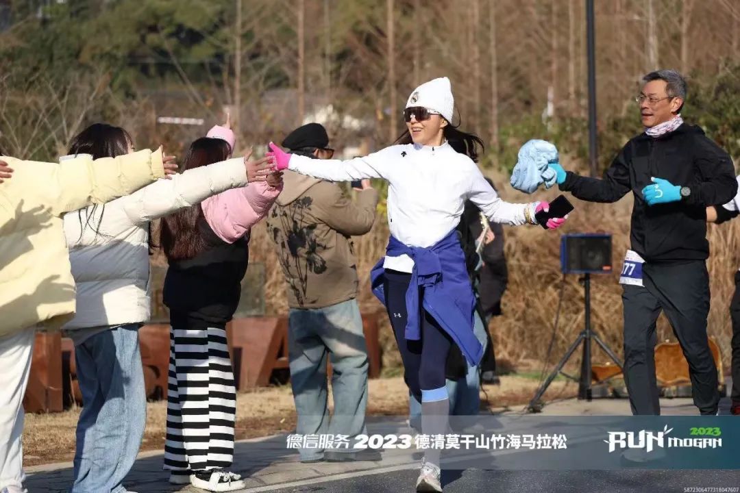 应对今年的强寒天气,颇有经验的组委会赛前通过短信、推文等形式提醒广大参赛选手做好保暖措施、量力而行;参赛包里除了历年都有的保暖手套基础上增加了暖宝宝;在赛事起点工作区域为选手提供一次性雨衣、保温毯等保温工具,按需发放;赛道不同站点提供品类丰富的能量补给服务;所有组别选手冲线后均发放超大尺寸厚浴巾,迅速抵挡寒风,提供及时保护;终点姜茶、可可、咖啡三款热饮无限畅饮,还可兑换热腾腾的莫干山特色美食-青团。这些细致安排,都为选手们创造了一个更加舒适的比赛环境,让他们在享受比赛的同时也能感受到关怀和温暖。