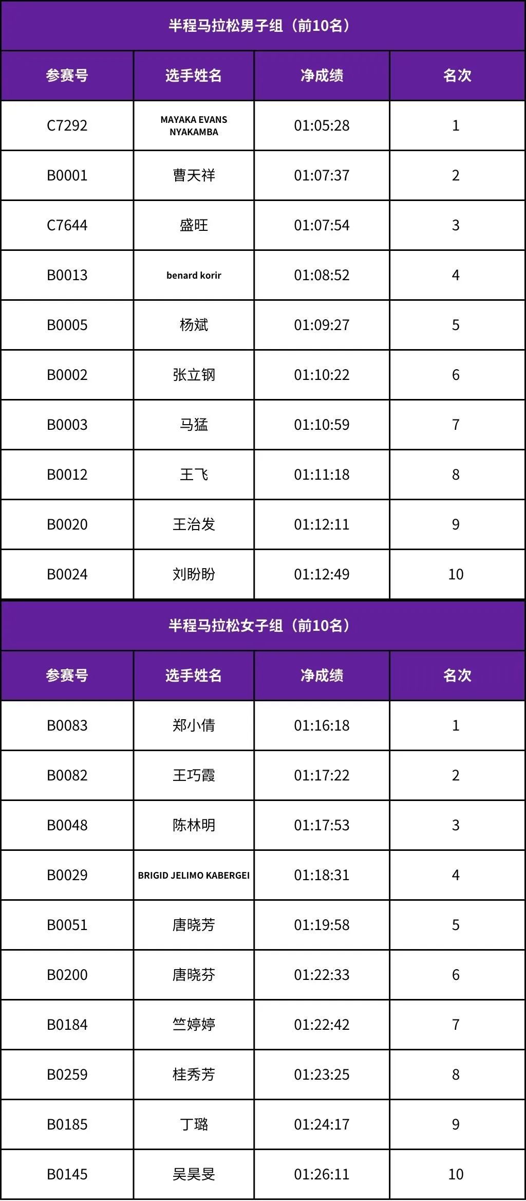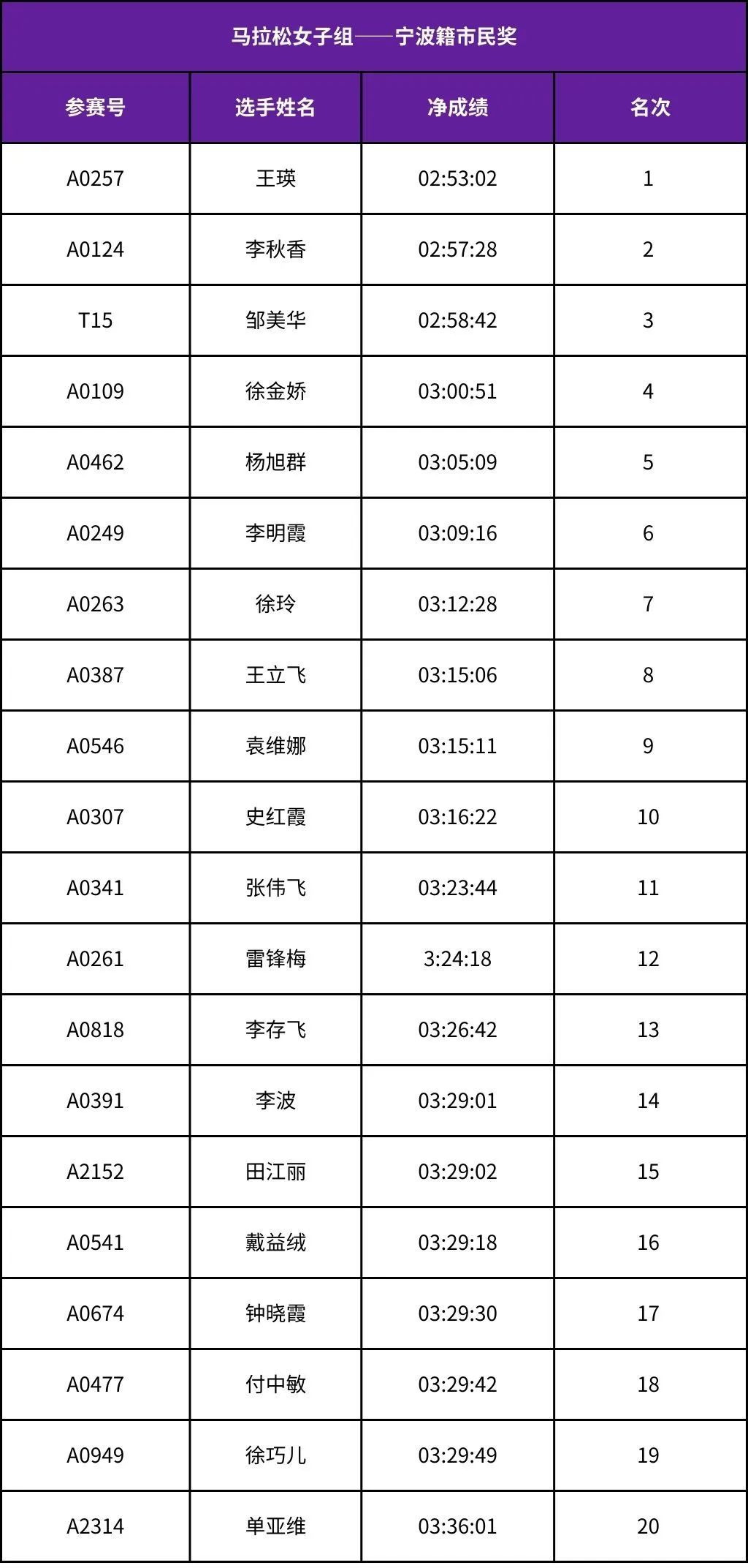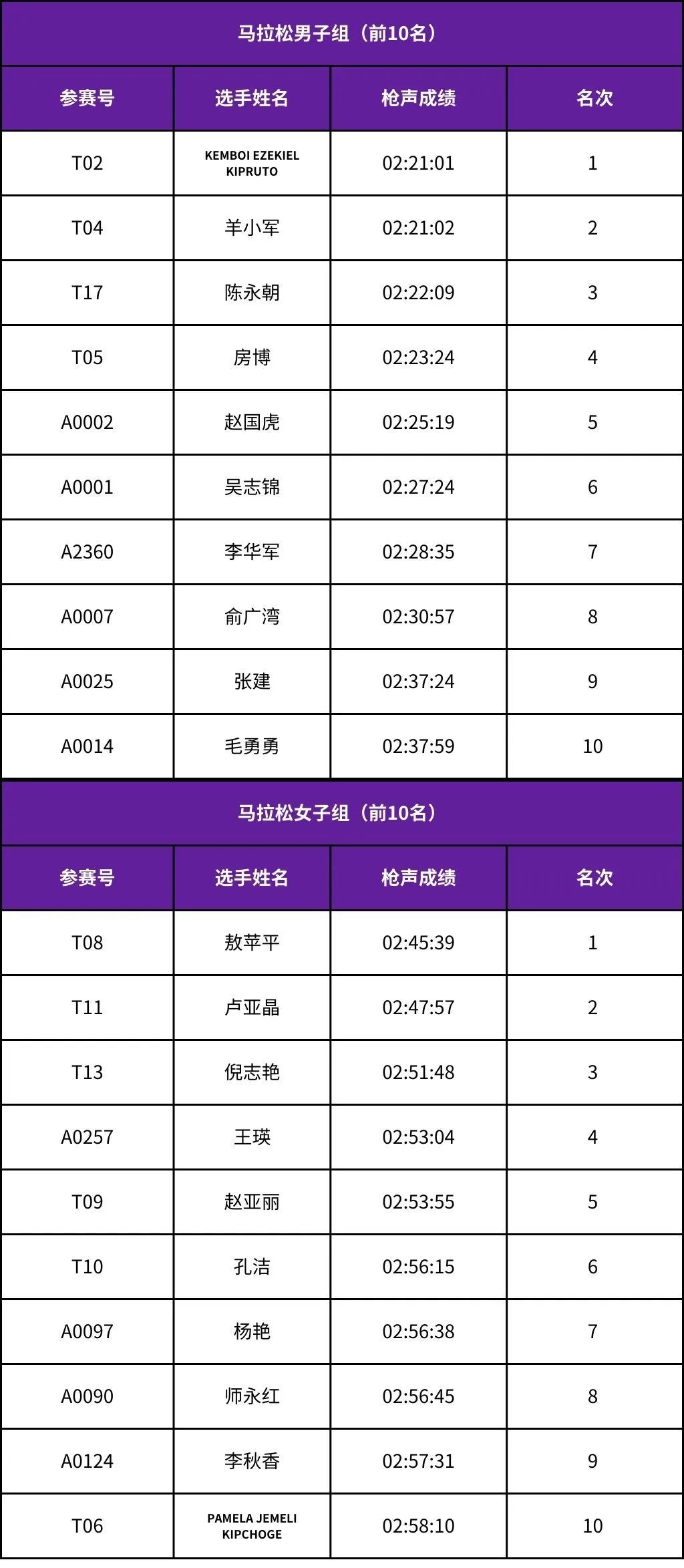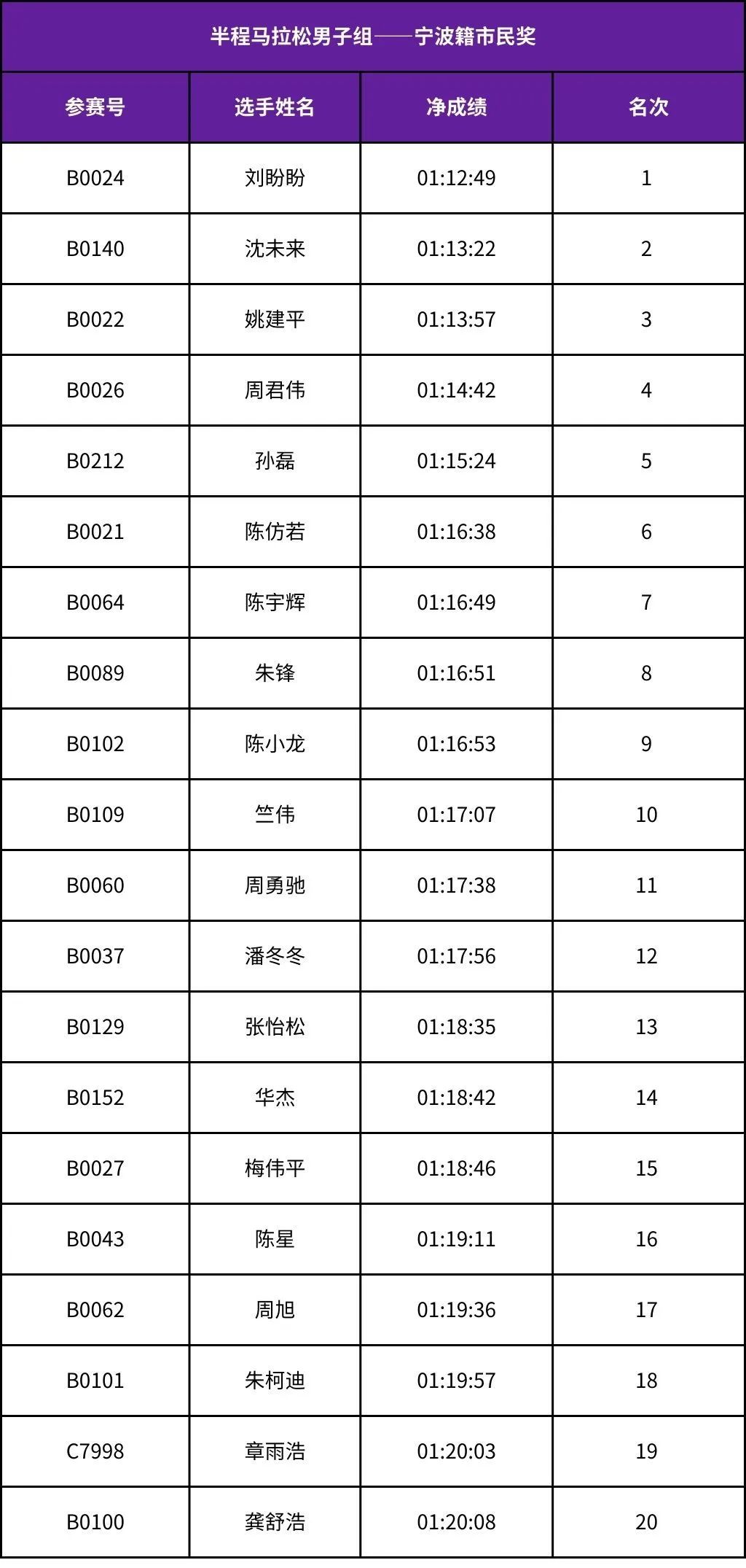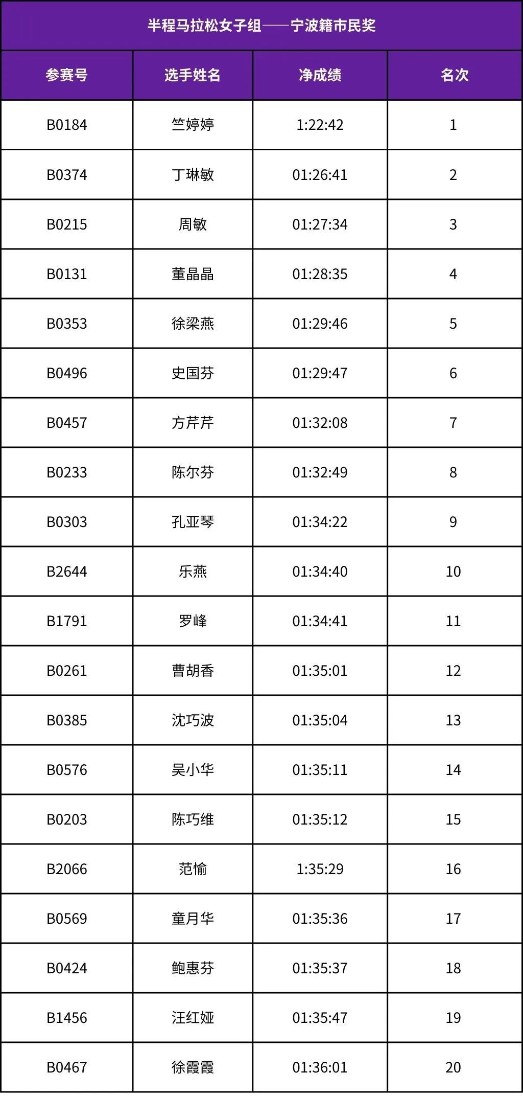 经过成绩公示、技术核查与更正,现公布马拉松和半程马拉松男、女前十名选手获奖名单、宁波籍市民奖前二十名获奖名单,将于15个工作日内联系获奖选手发放奖金。